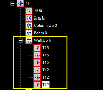 完成讀取之牆位,會以實心圖層表示,並顯示於左側樹狀節點區。