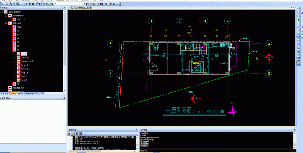 2-1. 將1F節點展開,點選外框按右鍵設定1樓建築平面圖範圍。